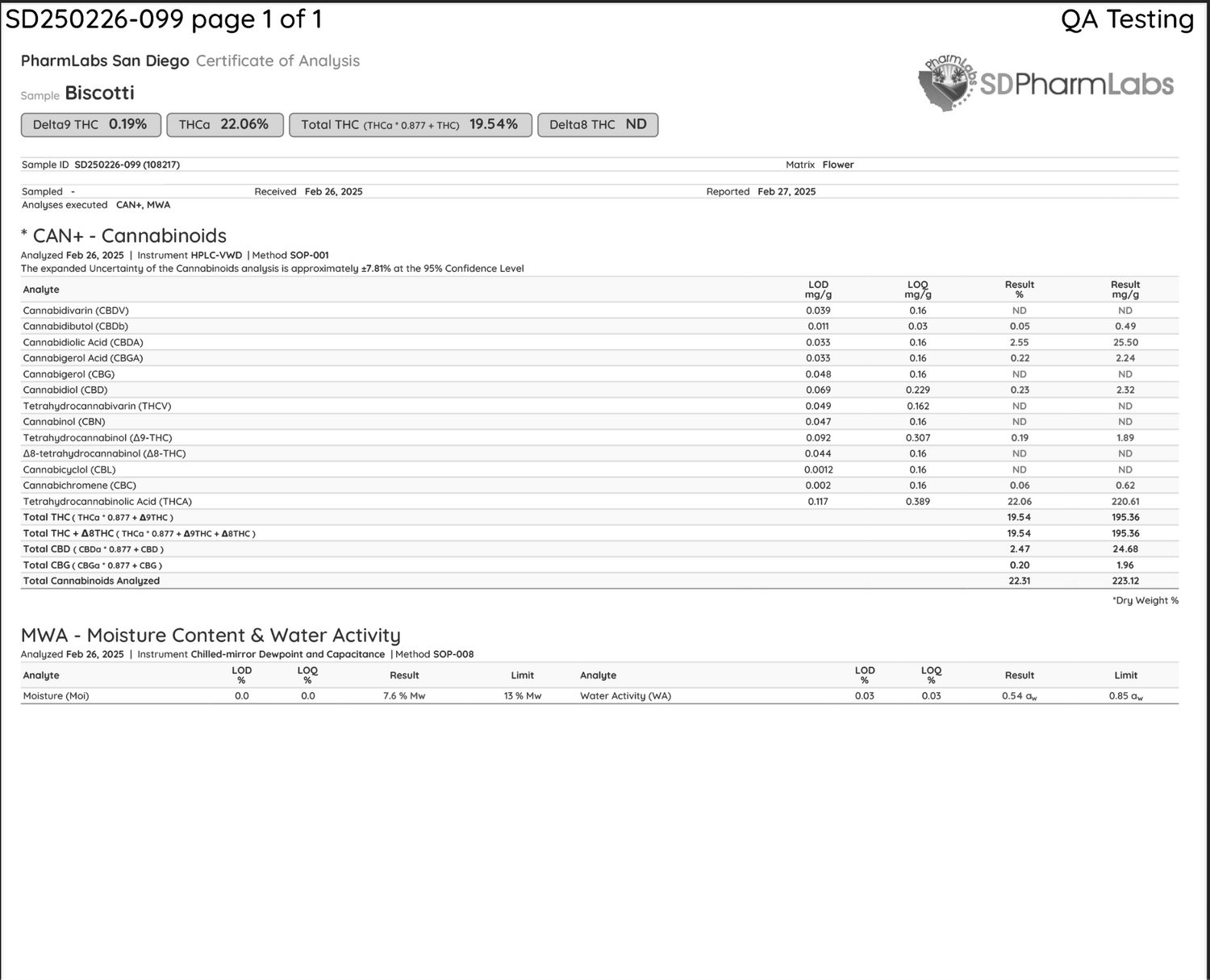 Savor the sweet, nutty aroma of Biscotti THCA Flower from the Nugs™ Premium Exotic Collection. A legendary Cookies Family cross (Gelato #25 x Sour Florida OG), Biscotti is known for its dense, frosty nugs with a rich cookie-dough flavor layered over earthy gas undertones. This hybrid delivers smooth relaxation with a euphoric, creative lift — perfect for winding down or sparking inspiration. Every batch of Biscotti is lab-tested for potency and purity, upholding the Nugs™ standard of exotic quality.